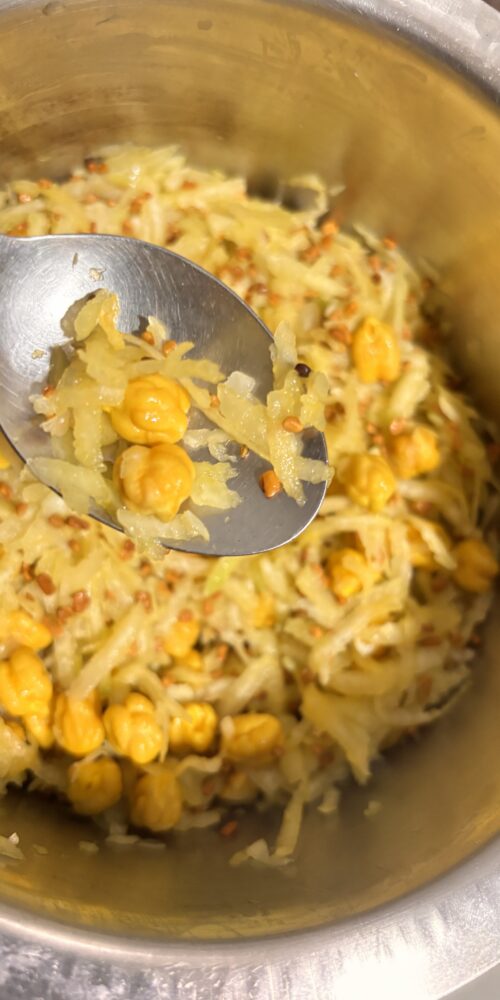 Pour over the Kabuli chana mixture and mix thoroughly.