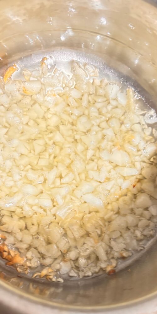 Heat oil in pan and sauté garlic for 2 mins.