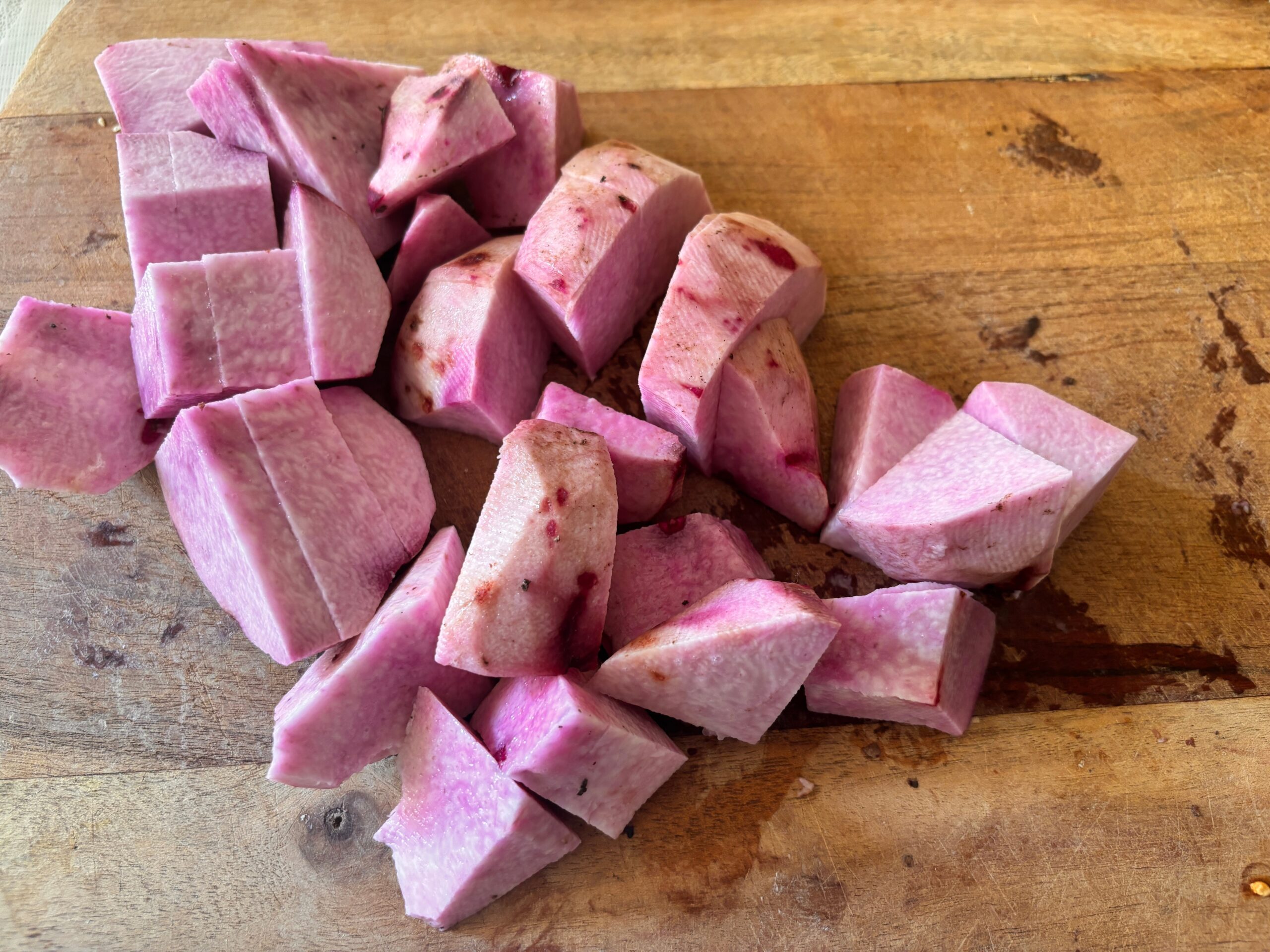 Raw purple yam can cause itching/irritation for some people.