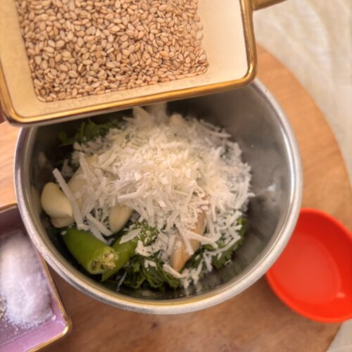 3.Grind all the green masala ingredients into a coarse mixture.